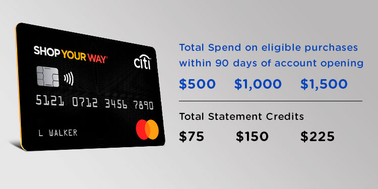 This offer is only available for new Shop Your Way Mastercard® accounts opened 10/1/24 – 3/31/25, is not transferable and is subject to credit approval. Receive a $75 statement credit each time eligible purchases made with your new Shop Your Way Mastercard total $500 or more and post to your new account within the first 90 days of account opening, up to maximum total value of $225 in statement credits for this offer. The following types of transactions do not qualify as eligible purchases: use of checks that access your Shop Your Way account, balance transfers, cash advances, traveler’s checks, foreign currency purchases, money orders, wire transfers, and similar cash-like transactions, lottery tickets, gaming chips and similar betting transactions; interest and account fees; unauthorized charges; and items returned for credit. The Shop Your Way Mastercard account must be current and open at the time we determine whether you qualify for the statement credit(s) in order to receive the statement credit(s). Please allow 4-8 weeks following the end of the promotional period for the statement credits(s) to be added to your account. Valid on new accounts only. Limit one new account offer per account. Offer subject to change without notice. Offer at participating locations only and may vary. Restrictions apply.